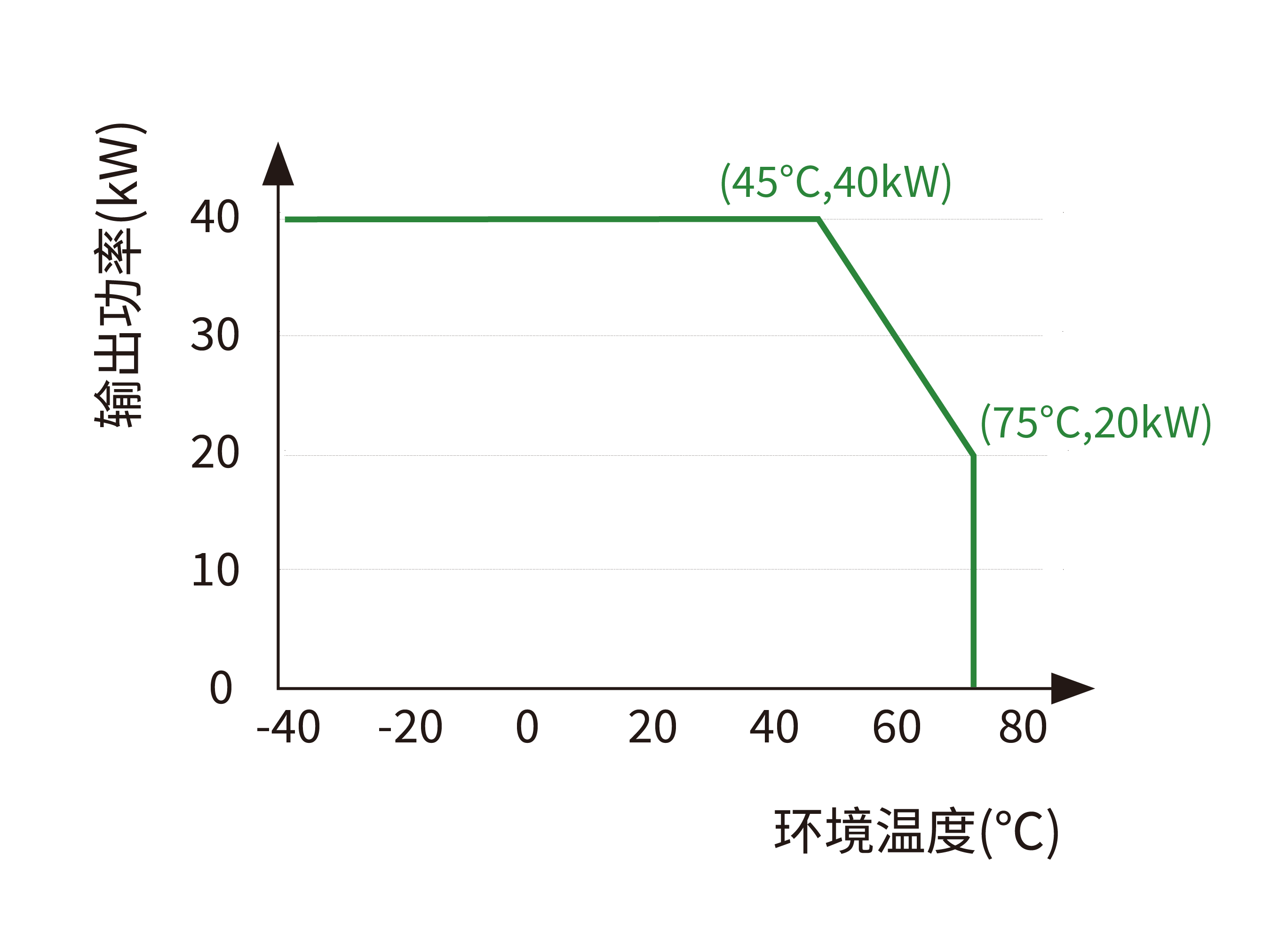 | 工作温度 | -40℃ ~75℃;-40±4° C 模块起机;55° C 以上降额使用 75±4° C 以上关机保护 |